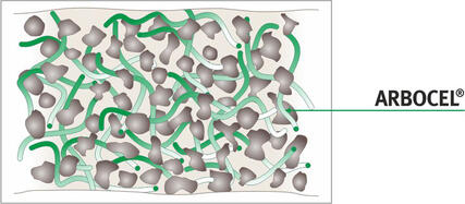 ARBOCEL® fibers are commonly used in dry mortar applications like tile adhesives, plasters, joint fillers but also waterborn systems like paints, plasters but also bitumen based products like sealants.
